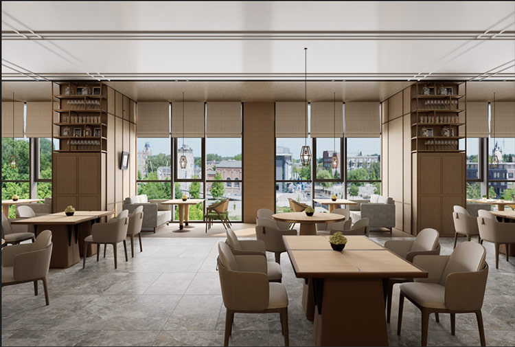 * Rengên bêalî yên germ: Awazên karamelîzekirî yên ku sor-qehweyî bi nûjeniyê re tevdigerin, ji bo afirandina jîngehek bazirganî ya nostaljîk guncan e.