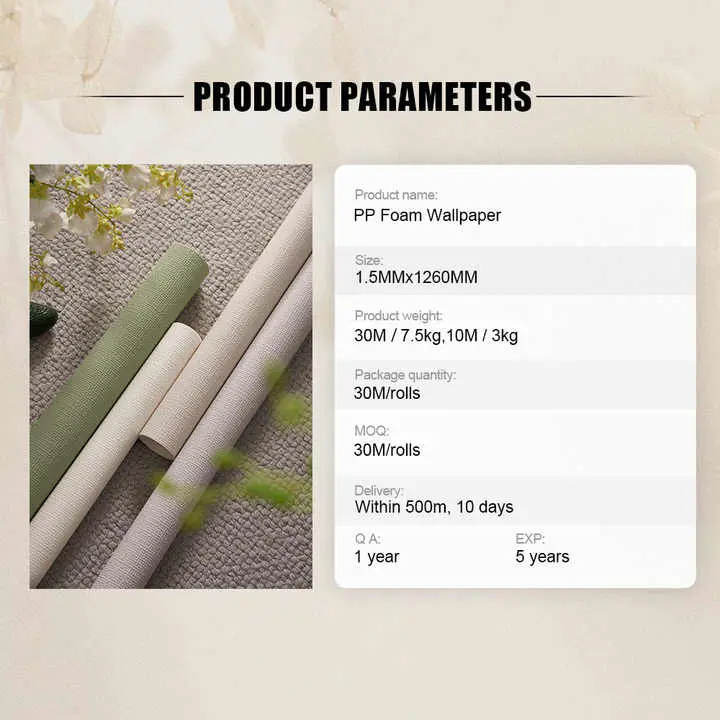 · Materyona Durable û Avê: Wallpaper ya PP-ya Mezinahî ji materyalek polyptylene ya bilind tê çêkirin, ku ew ji bo moşek û germbûnê bimîne, di nav de di navbêna cuda de, di nav de cîhên malê, bazirganî û rêveberiyê jî bêkêmasî ye.